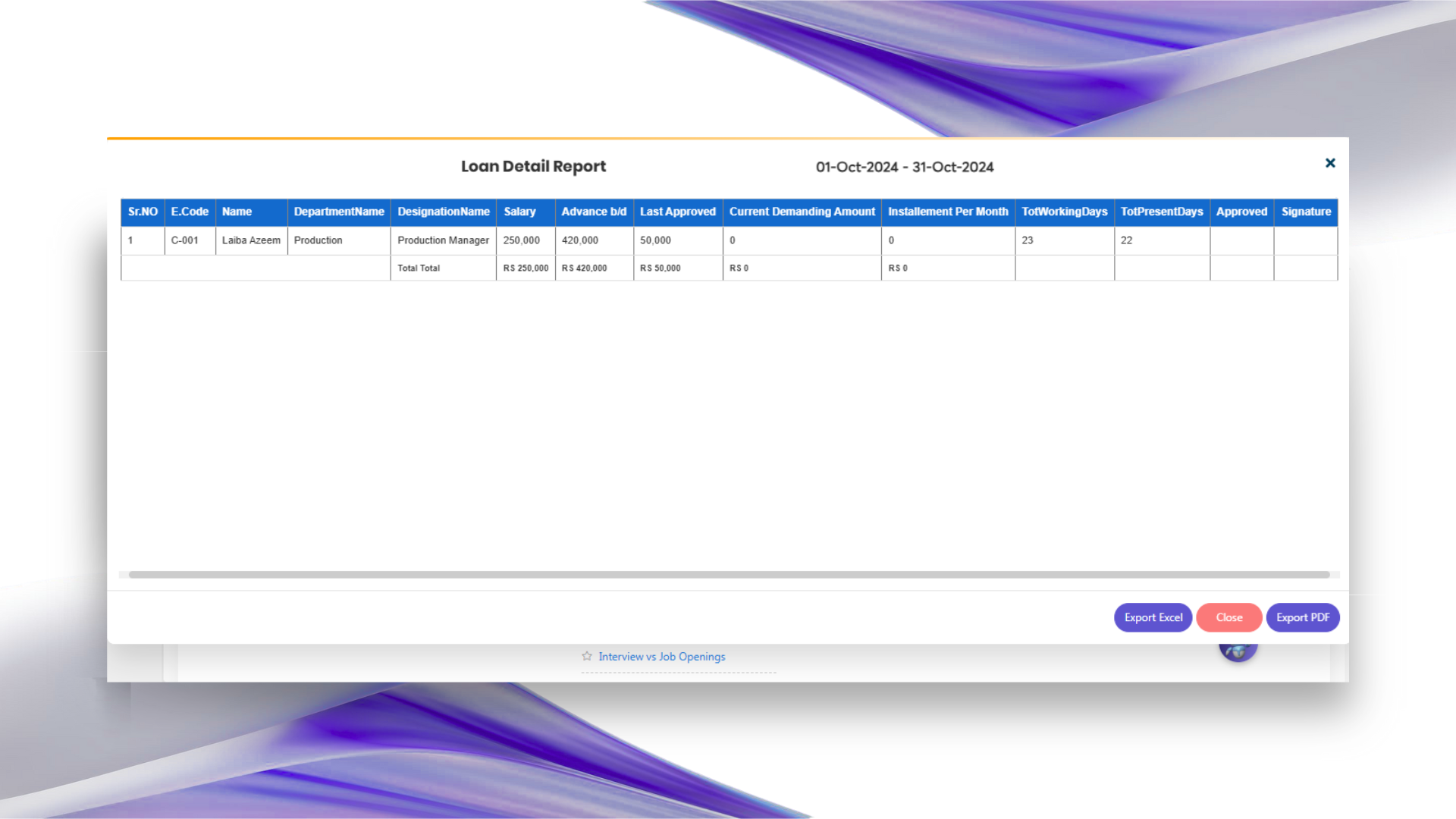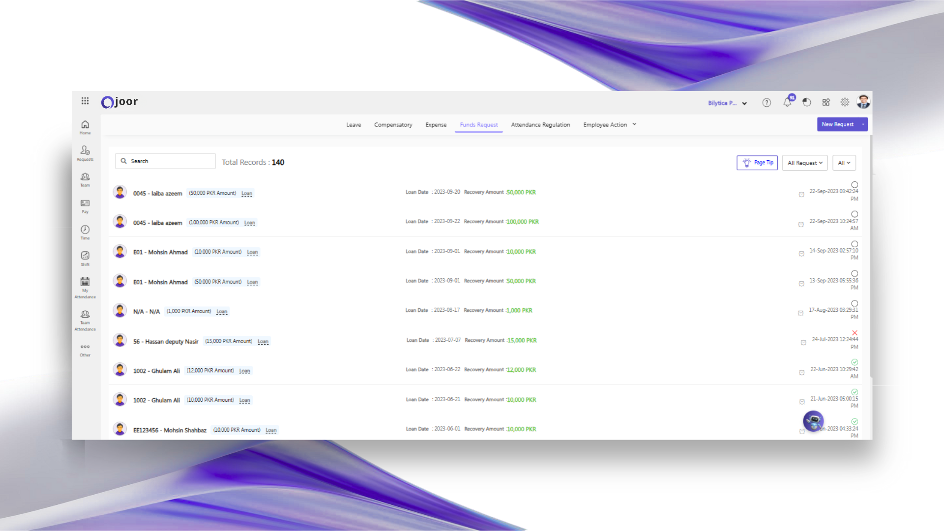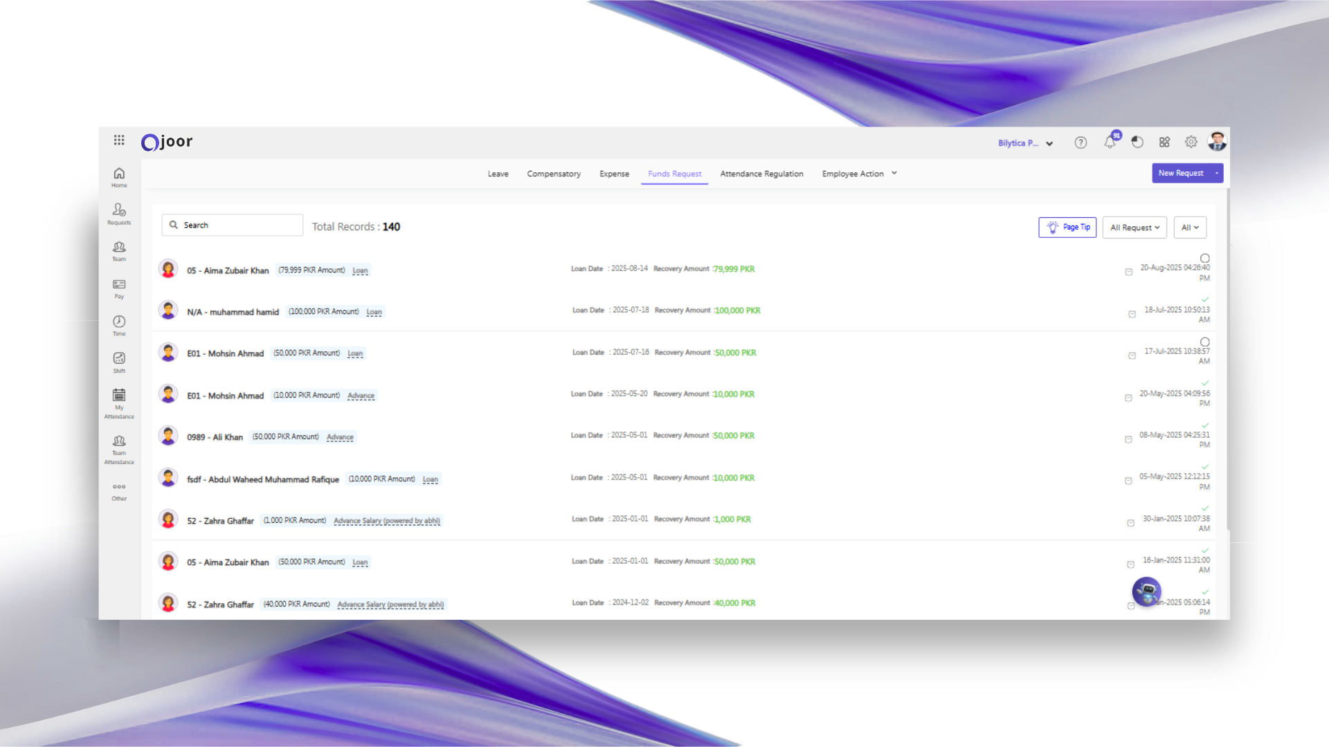 يمكن للموظفين تقديم طلبات القروض بسهولة عبر الإنترنت من خلال منصة أجور. عملية سلسة وشفافة، بدون أي أوراق أو تأخير. تحصل فرق الموارد البشرية على جميع التفاصيل فورًا لمراجعتها والموافقة عليها بسرعة.