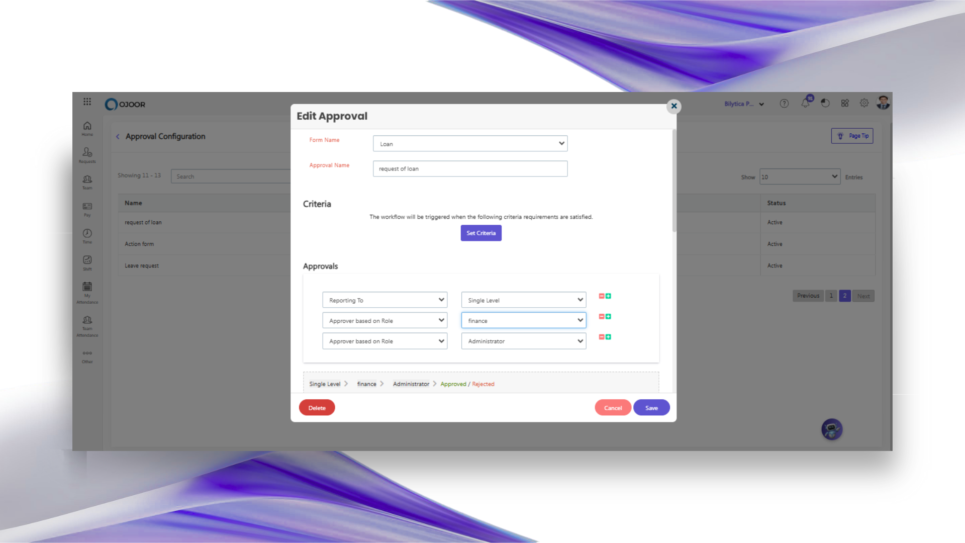 صمم سير عمل للموافقات يتناسب مع سياسات شركتك الفريدة. من المراجعات أحادية المستوى إلى المراجعات متعددة الخطوات، تتكيف Ojoor بسهولة. اضمن الامتثال مع الحفاظ على عملية مرنة وفعالة.