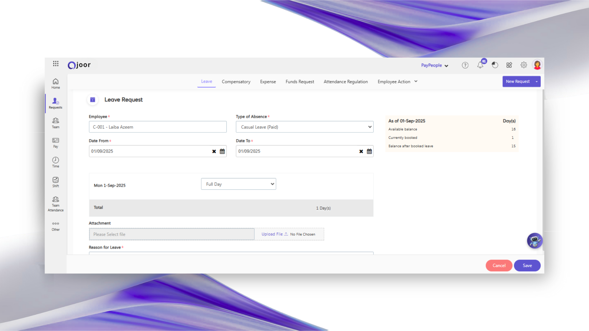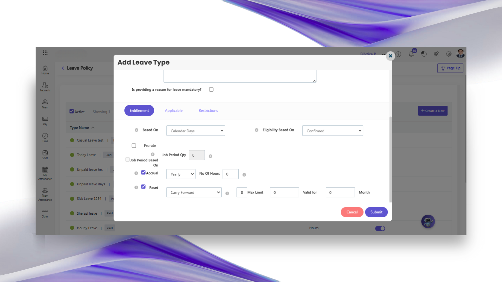يمكنك عبر منصة أجور وضع قواعد إجازات مرنة تتلاءم مع ثقافة مؤسستك ومتطلبات بيئتك القانونية، سواء إجازات سنوية أو مرضية أو رسمية وإقليمية، مع ضمان الالتزام والامتثال.
