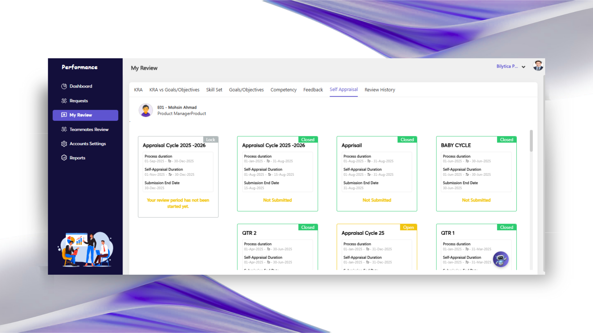 يُوازن حل Ojoor لتحليل النتائج الرئيسية (KRA) بين أهداف المؤسسة والإدارات والأفراد ونتائج قابلة للقياس. من خلال تتبع الأداء من خلال أهداف وأهداف فرعية واضحة، يُمكن للشركات ربط إنجازات الموظفين مباشرةً بالإيرادات والنمو الاستراتيجي.
