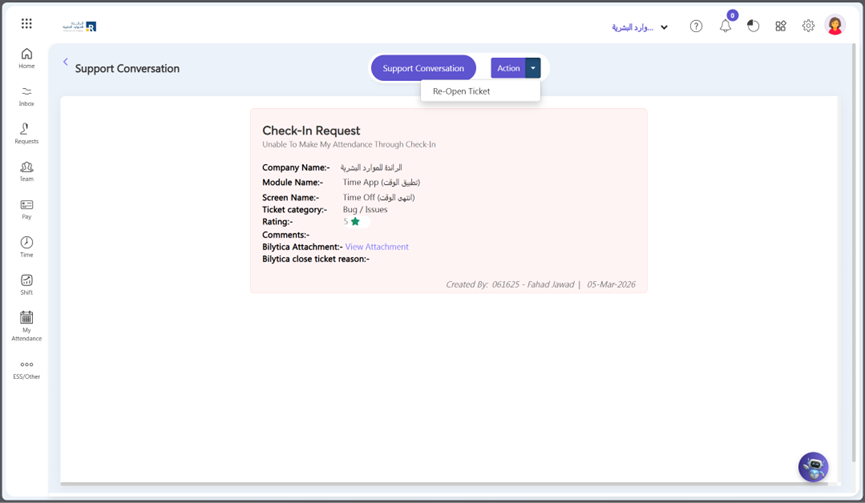- Then the ticket will visible in Re-Open tab.
