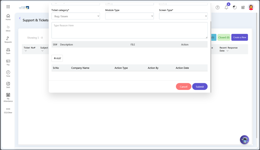 - Go to Help > Support and Ticket > New/ Suggestion/ Feedback