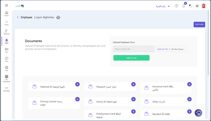 The appropriate tabs are used to organize the information. For instance, the “Team” tab will give information about the employee, but will also reveal personal information about the individual, such as contact details. All documents that are uploaded to employees profile will be visible on “Documents” page.
