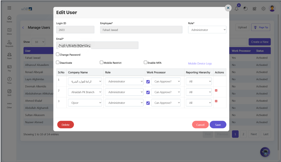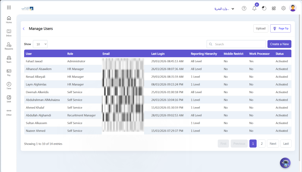 As an HR manager and administrator, you can examine employees’ login Time and relevant information, including the date and time of their most recent login and their status, as well as manually add new users.