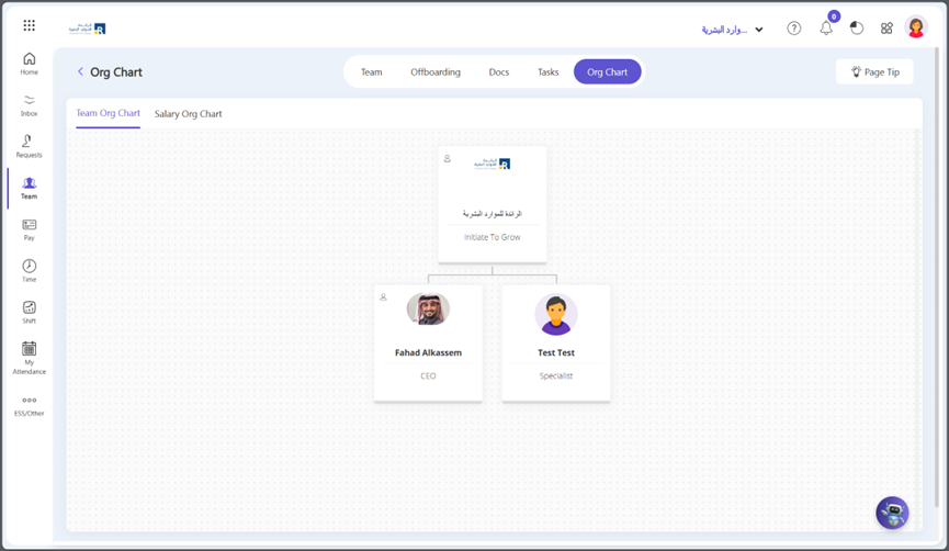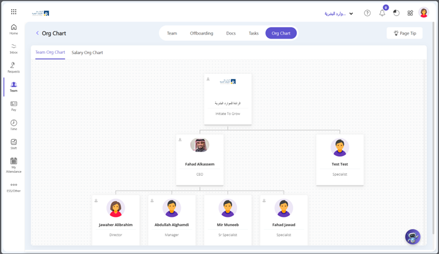 - Navigate to the Team > Org Chart > Team Org Chart.