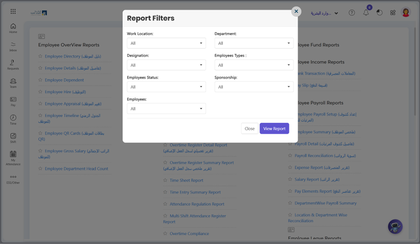 Report Filters: Once you have selected the type of report you want to generate, you can customize it by selecting the date range, employee names, and other relevant parameters.